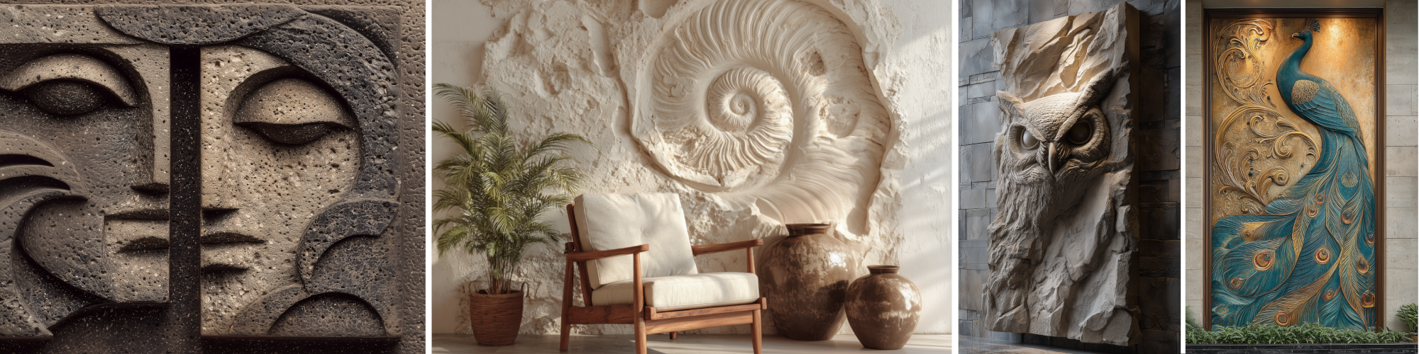 Заказчик Авторский контент Изображение в кейс Описание работ Барельеф, 3D-панели, декор стен.Идеи для создания 3D-гипсового рельефа с подсветкой: узоры, маски, природа, животные, горы, имитация скал.Применение: акцентные стены, кухонные фартуки, кафе, бары, офисы, ванные. Цифровой и графический дизайн