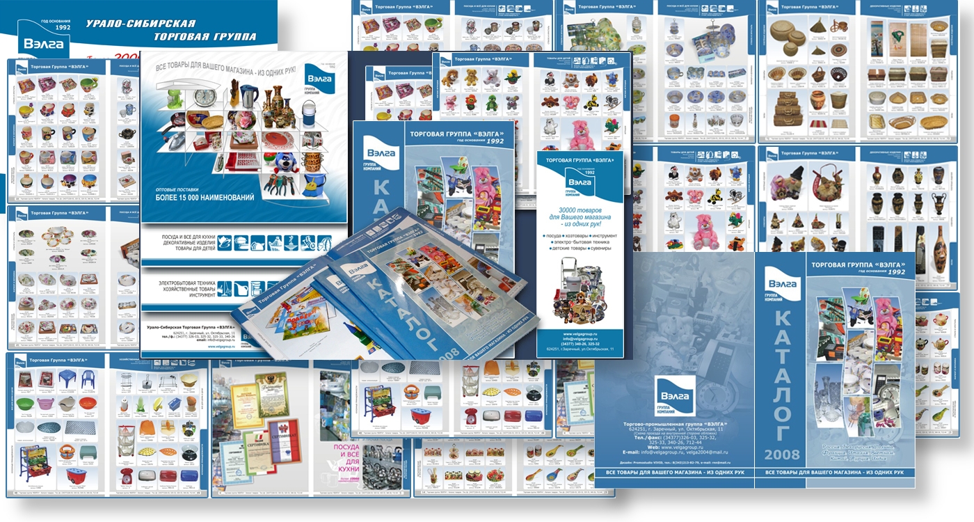 Заказчик ТПГ "ВЭЛГА" Описание работ По заказу ООО "ВЭЛГА" был разработан квартальный календарь, баннер, визитки и каталог на 32 полосы.Для каталога проведена предметная фотосъёмка.Обработка более 1500 фотографий товаров.Вёрстка и подготовка макета к печати.Сопровождение тиражей в типографии. Изображение в кейс Дизайн и изготовление печатной, и сувенирной продукции