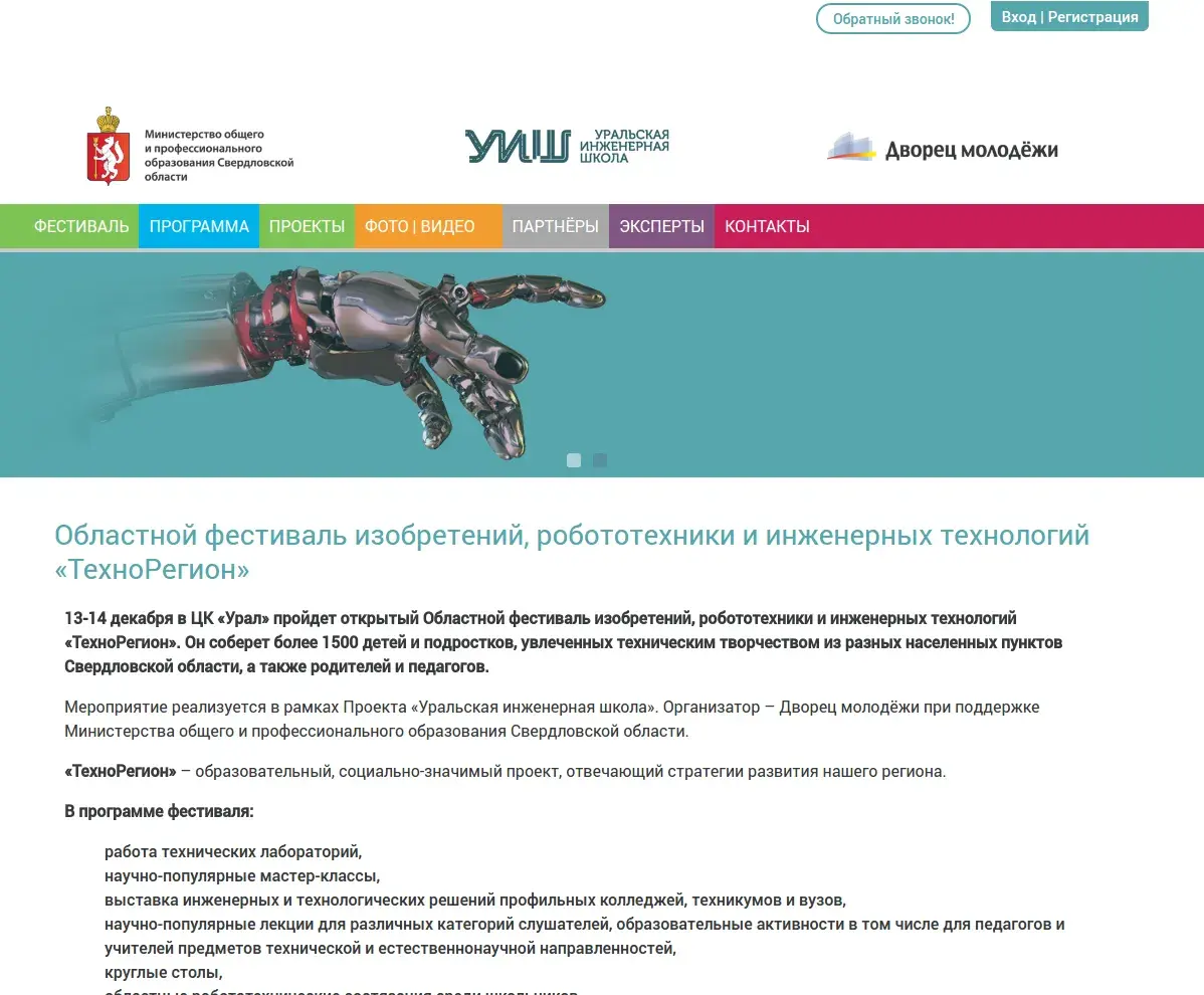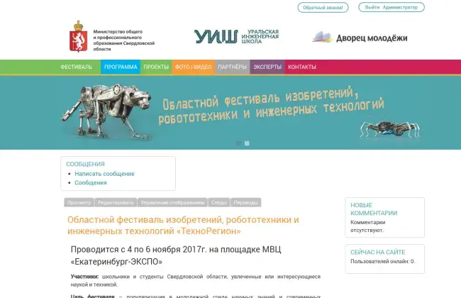 Для проведения ежегодного фестиваля в ГАУДО СО «Дворец молодёжи» создан сайт на drupal cms 7, с добавлением прямой видео-трансляции финального мероприятия по награждению участников.
