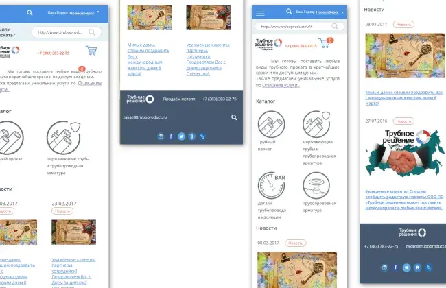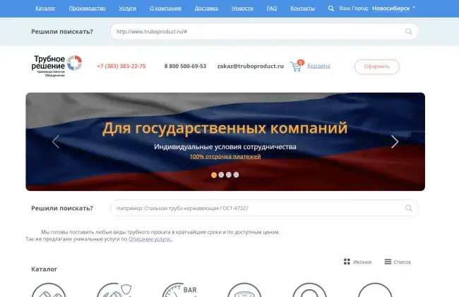 Заказчик truboproduct.ru Описание работ Адаптивная вёрстка сайта-каталога truboproduct.ru по готовому проекту.Создание сквозных шаблонов темы и веб-элементов с подключением js-скриптов; Изображение в кейс Сайты, сервисы, интернет-магазины
