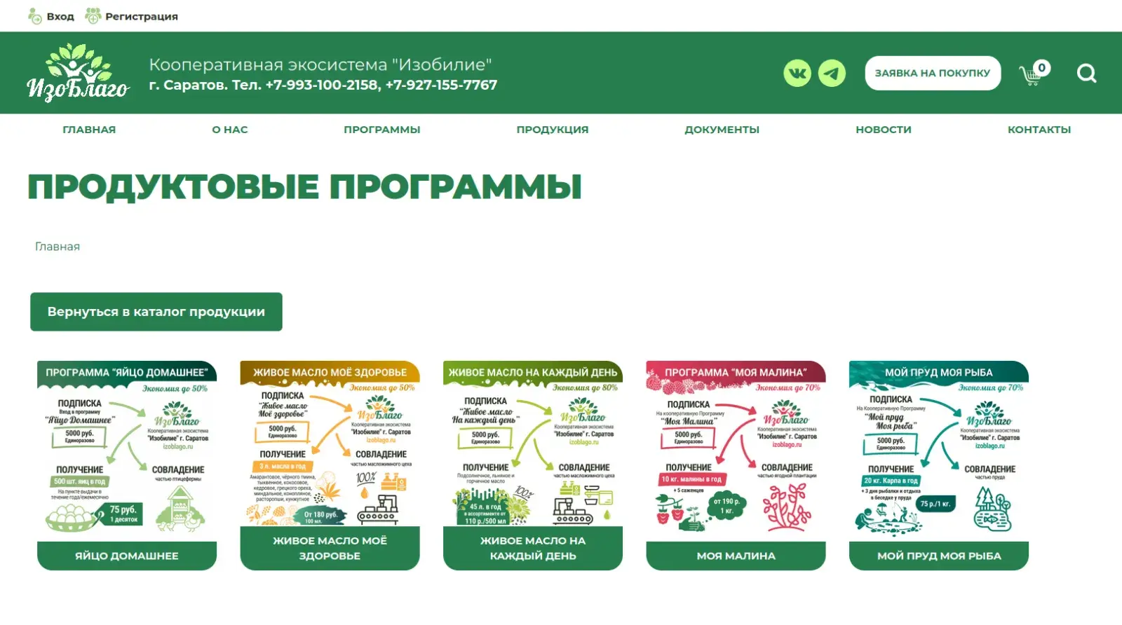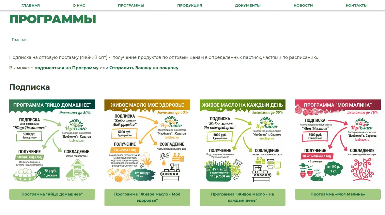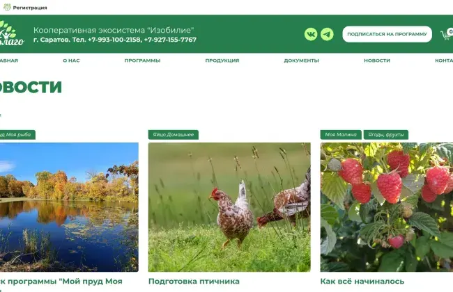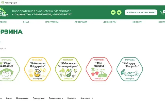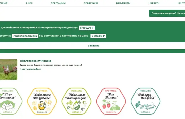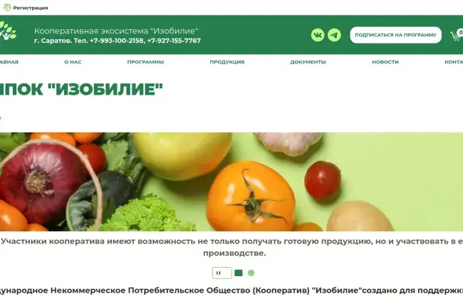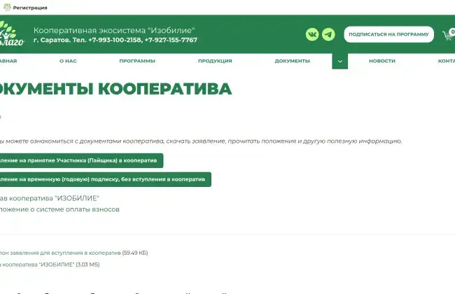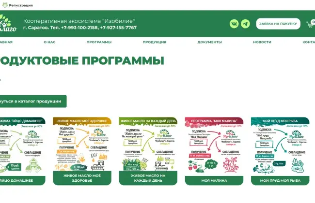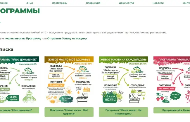Сайт izoblago.ru еще находится в разработке, но уже сейчас онлайн-пользователь может вступить в кооператив и подписаться на продуктовую программу не выходя из дома.