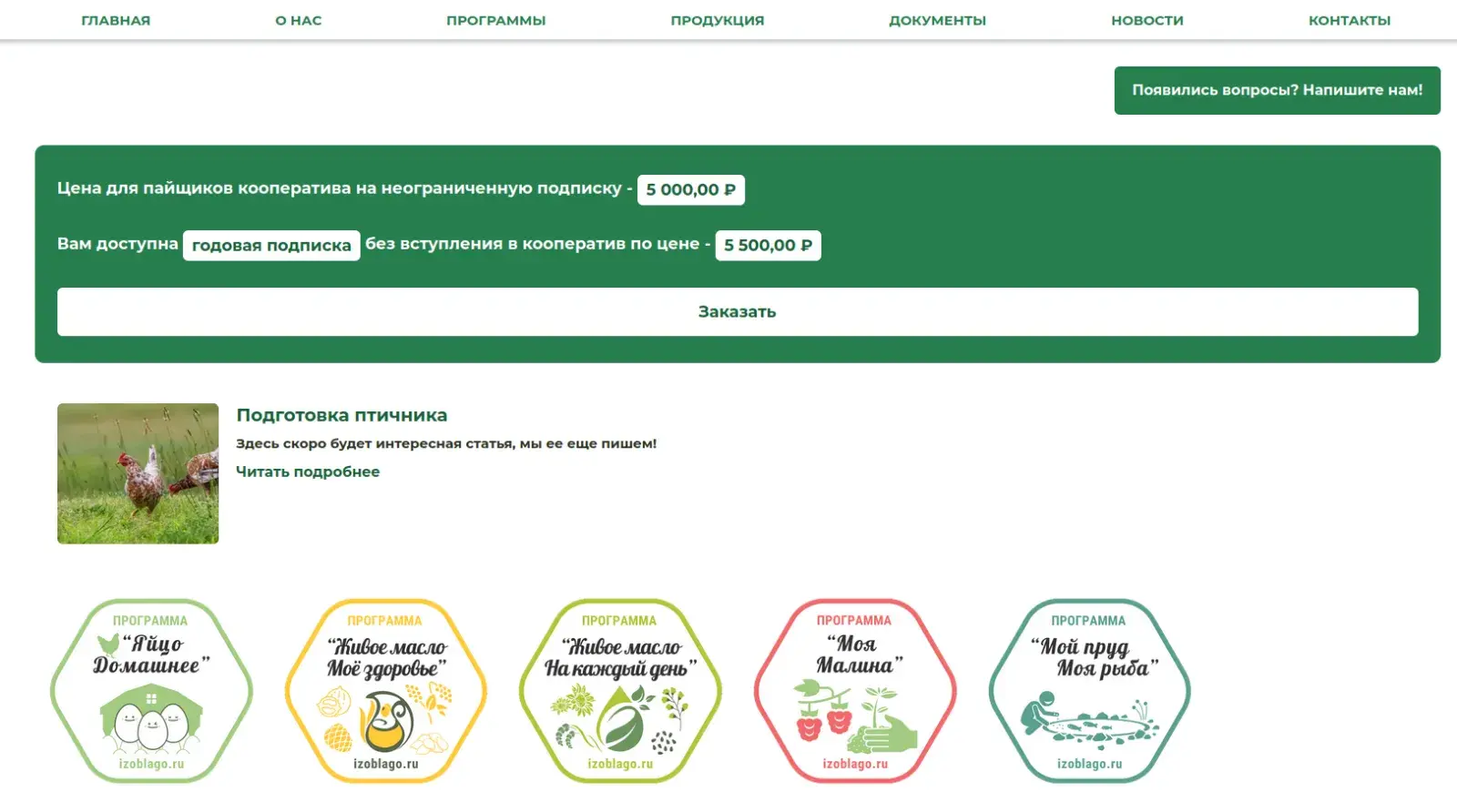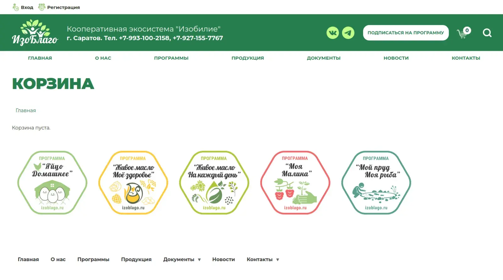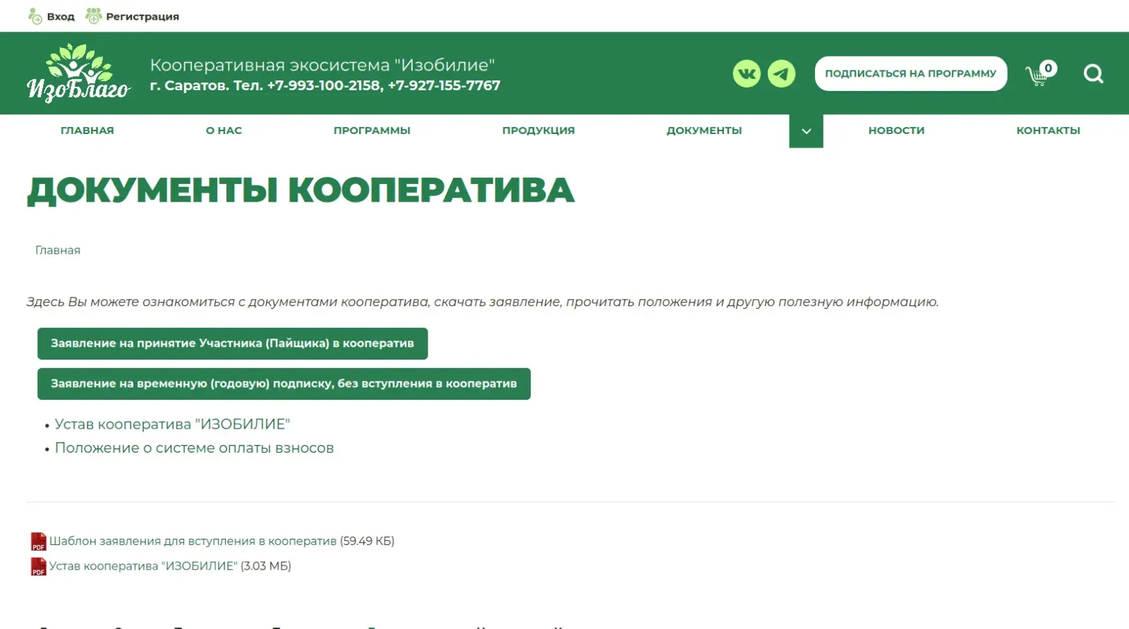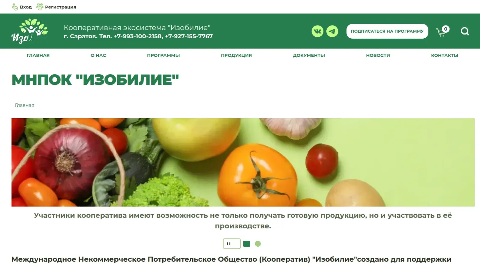 Сайт izoblago.ru еще находится в разработке, но уже сейчас онлайн-пользователь может вступить в кооператив и подписаться на продуктовую программу не выходя из дома.