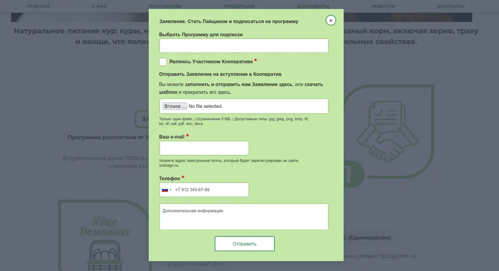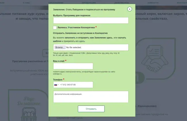 - Создание приёма заявлений на вступление в кооператив с последующим управлением пайщиками в админ-панели;